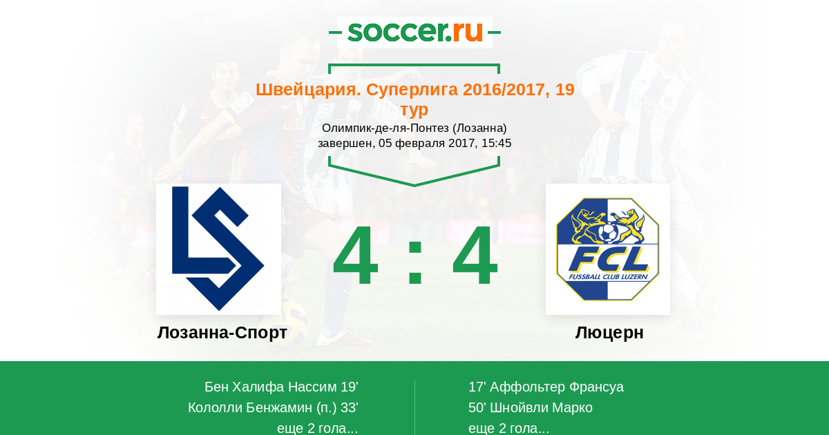 Швейцария. Суперлига 19.11.2017 Лозанна-Спорт Логотип футбольный клуб Лозанна-Спорт 3:1 Логотип футбольный клуб Люцерн Люцерн