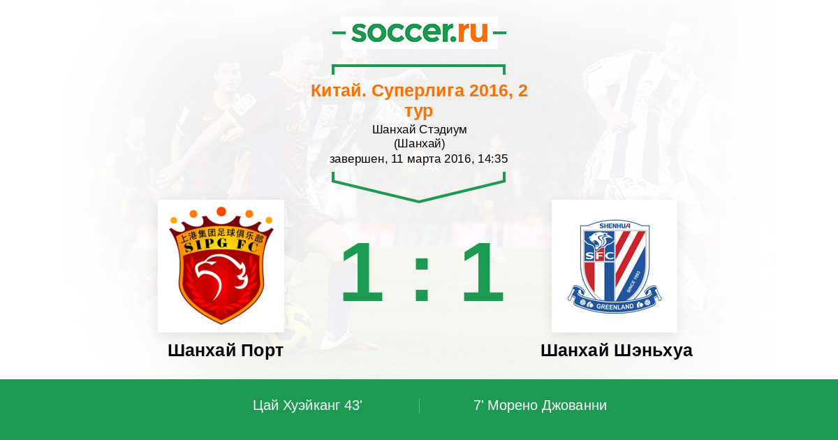 Китай. Суперлига 31.08.2014 Шанхай Шэньхуа Логотип футбольный клуб Шанхай Шэньхуа 1:1 Логотип футбольный клуб Шанхай Порт Шанхай Порт