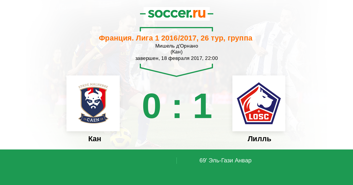 Франция. Лига 1 13.01.2018 Кан Логотип футбольный клуб Кан 0:1 Логотип футбольный клуб Лилль Лилль