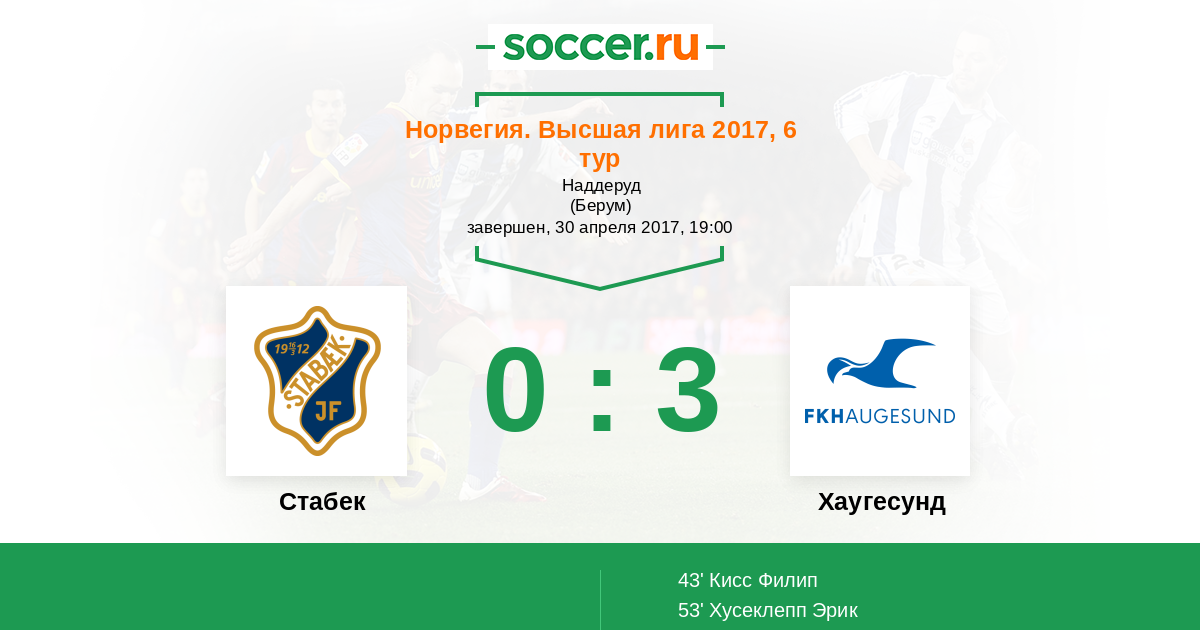 Норвегия. Высшая лига 25.04.2016 Хаугесунд Логотип футбольный клуб Хаугесунд 3:1 Логотип футбольный клуб Стабек (Берум) Стабек
