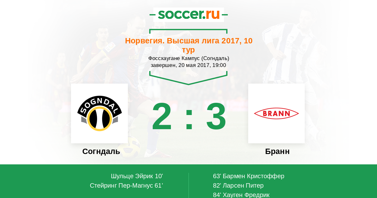 Норвегия. Высшая лига 20.05.2014 Согндаль Логотип футбольный клуб Согндаль 2:1 Логотип футбольный клуб Бранн (Берген) Бранн