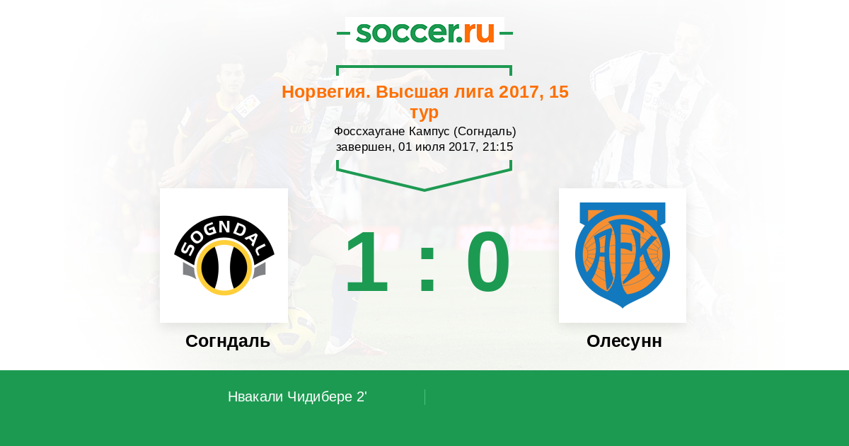 Норвегия. Высшая лига 25.04.2011 Олесунн Логотип футбольный клуб Олесунн 1:0 Логотип футбольный клуб Согндаль Согндаль