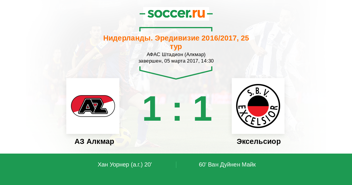 Нидерланды. Эредивизи 17.05.2015 Эксельсиор Логотип футбольный клуб Эксельсиор (Роттердам) 1:4 Логотип футбольный клуб АЗ Алкмар АЗ Алкмар