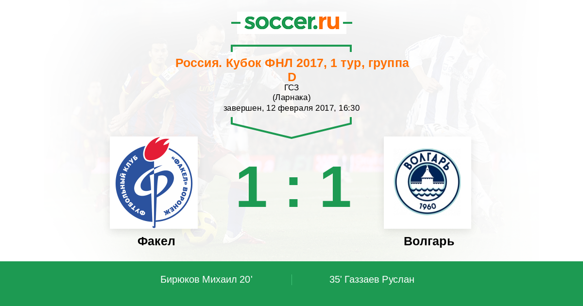 Товарищеские матчи. Клубы 17.02.2016 Факел Логотип футбольный клуб Факел (Воронеж) 1:1 (4:5) Логотип футбольный клуб Волгарь (Астрахань) Волгарь