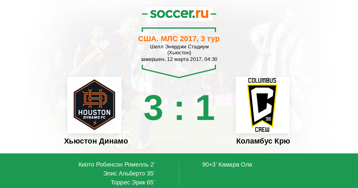США. МЛС 08.03.2015 Хьюстон Динамо Логотип футбольный клуб Хьюстон Динамо 1:0 Логотип футбольный клуб Коламбус Крю Коламбус Крю