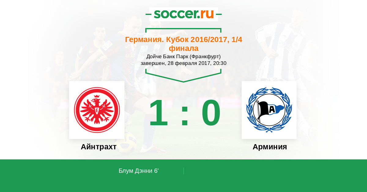 Германия. Кубок 10.04.2006 Айнтрахт Логотип футбольный клуб Айнтрахт (Франкфурт) 1:0 Логотип футбольный клуб Арминия (Билефельд) Арминия