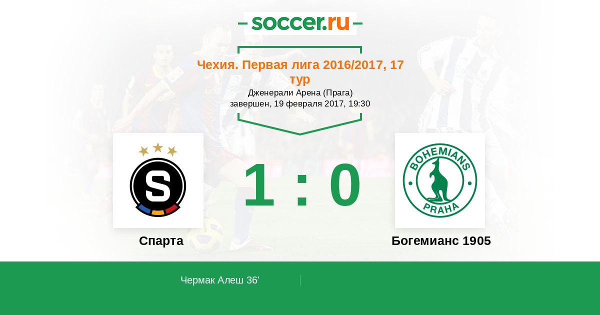 Чехия. Первая Лига 30.07.2017 Спарта Логотип футбольный клуб Спарта (Прага) 1:1 Логотип футбольный клуб Богемианс 1905 (Прага) Богемианс 1905