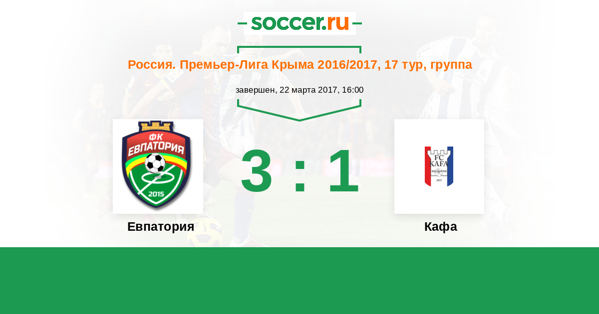 Россия. Премьер-Лига Крыма 20.08.2017 Евпатория Логотип футбольный клуб Евпатория 3:0 Логотип футбольный клуб Кафа (Феодосия) Кафа