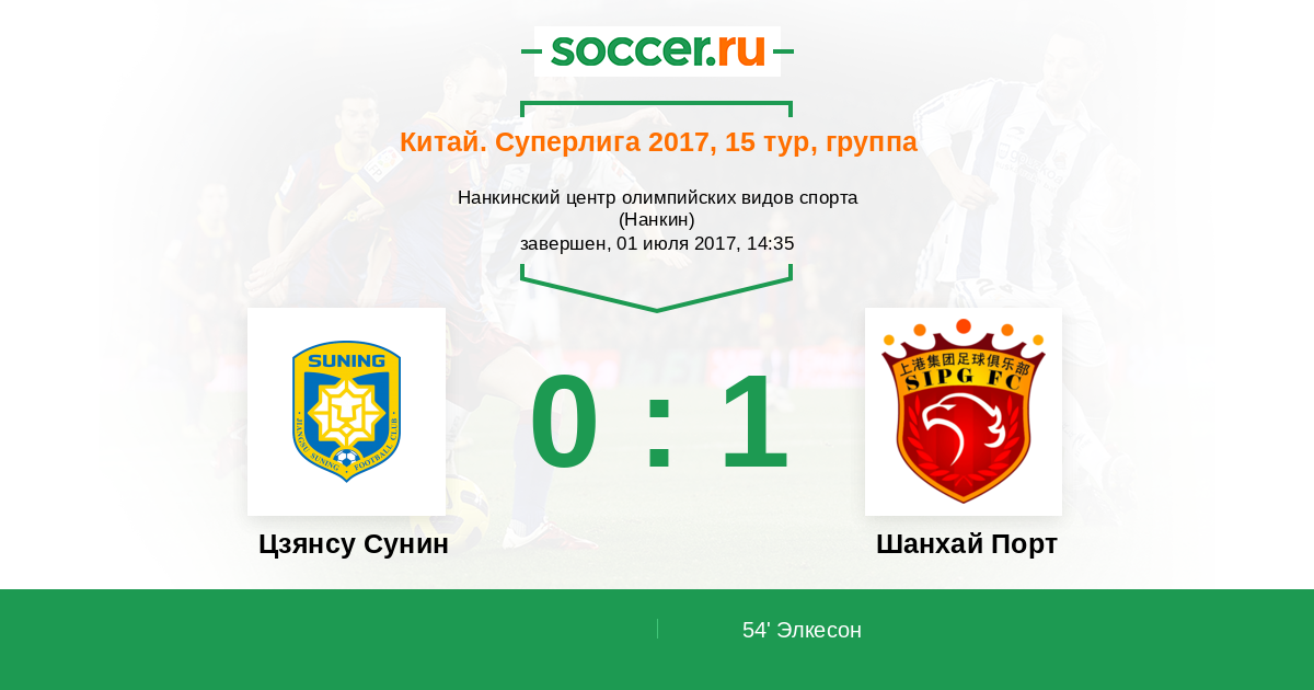 Китай. Суперлига 27.06.2015 Цзянсу Сунин Логотип футбольный клуб Цзянсу Сунин 1:4 Логотип футбольный клуб Шанхай Порт Шанхай Порт