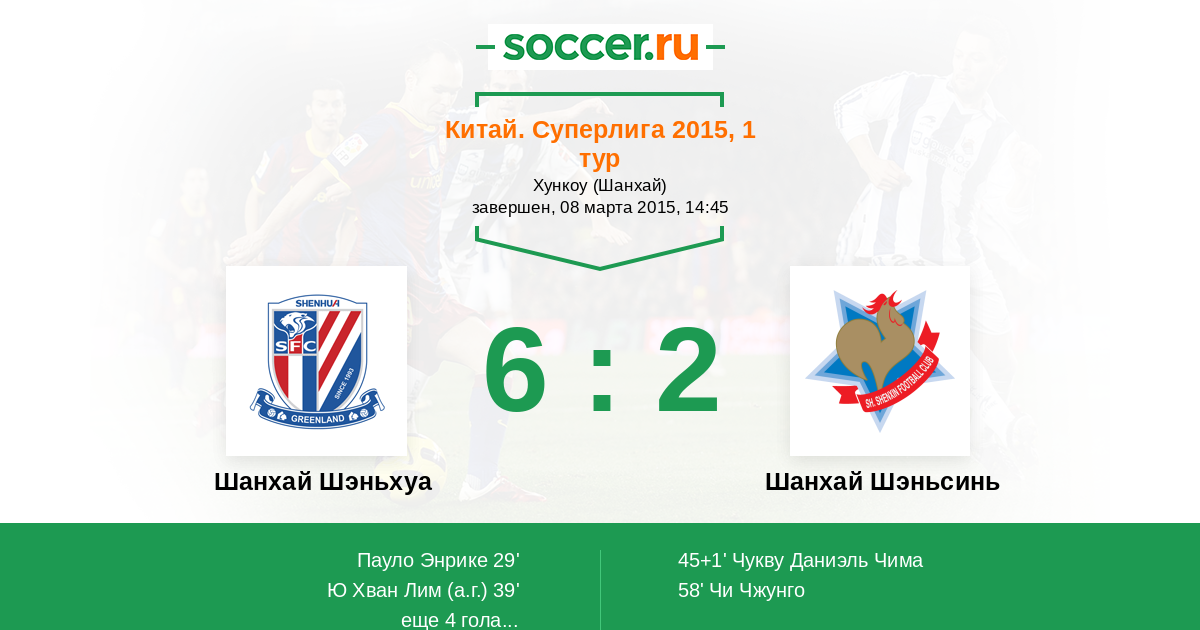 Шанхай Шэньхуа 1:1 0:0 1:1