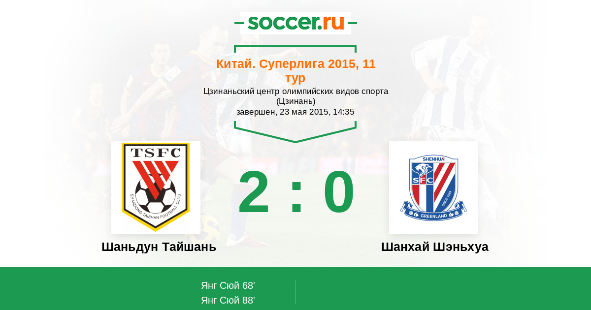 Китай. Суперлига 20.09.2015 Шанхай Шэньхуа Логотип футбольный клуб Шанхай Шэньхуа 1:2 Логотип футбольный клуб Шаньдун Тайшань (Цзинань) Шаньдун Тайшань