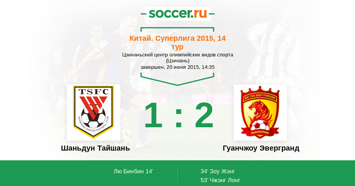 Китай. Суперлига 06.10.2013 Шаньдун Тайшань Логотип футбольный клуб Шаньдун Тайшань (Цзинань) 2:4 Логотип футбольный клуб Гуанчжоу Эвергранд Гуанчжоу Эвергранд