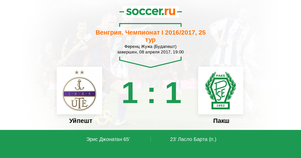 Венгрия. Чемпионат 1 20.04.2016 Уйпешт Логотип футбольный клуб Уйпешт (Будапешт) 1:1 Логотип футбольный клуб Пакш Пакш