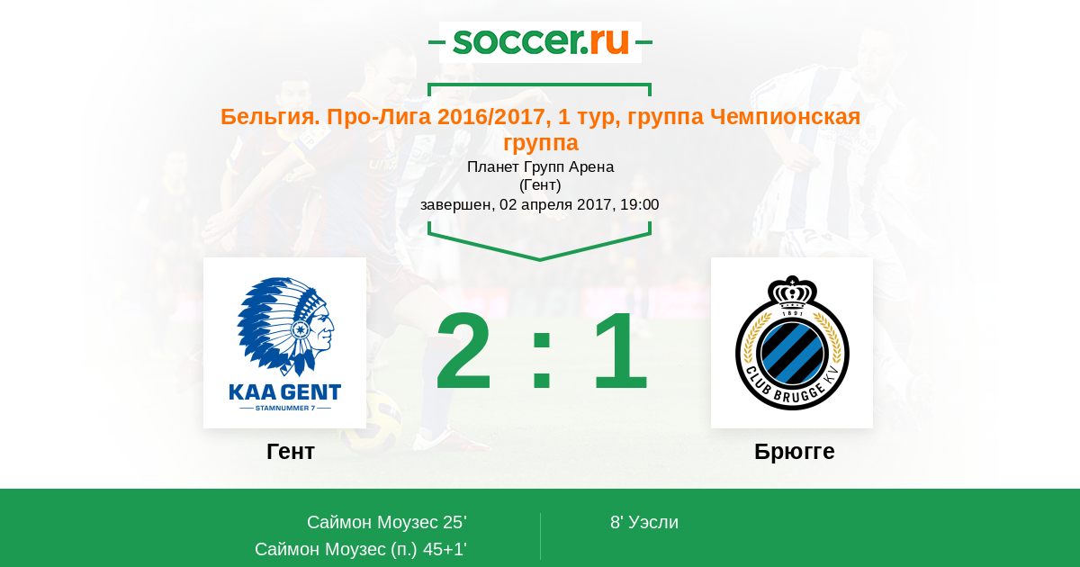 Бельгия. Про-Лига 09.04.2016 Брюгге Логотип футбольный клуб Брюгге 2:0 Логотип футбольный клуб Гент Гент