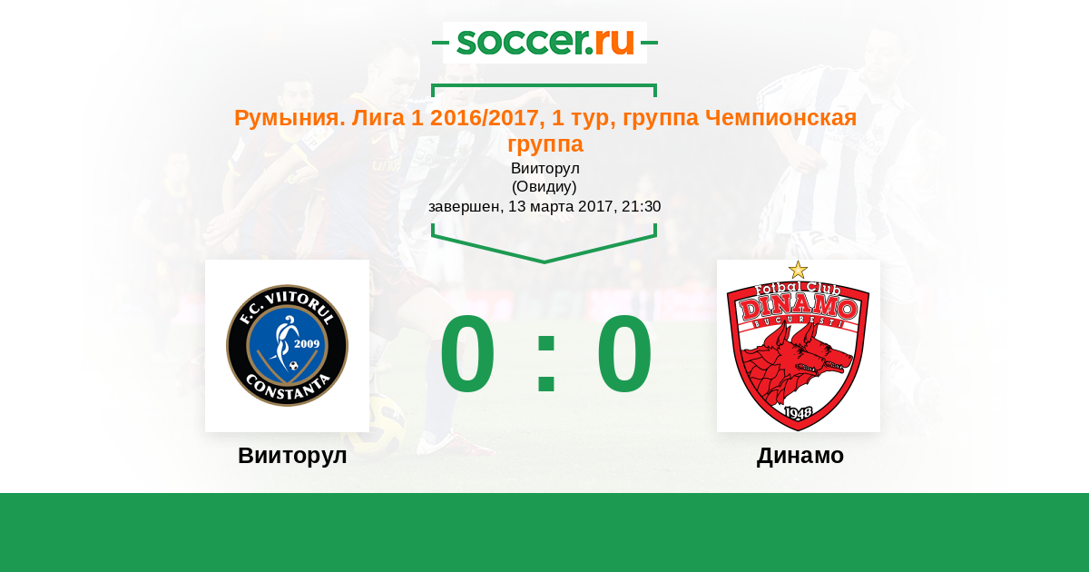 Румыния. Лига 1 20.09.2016 Вииторул Логотип футбольный клуб Вииторул (Констанца) 1:1 Логотип футбольный клуб Динамо (Бухарест) Динамо
