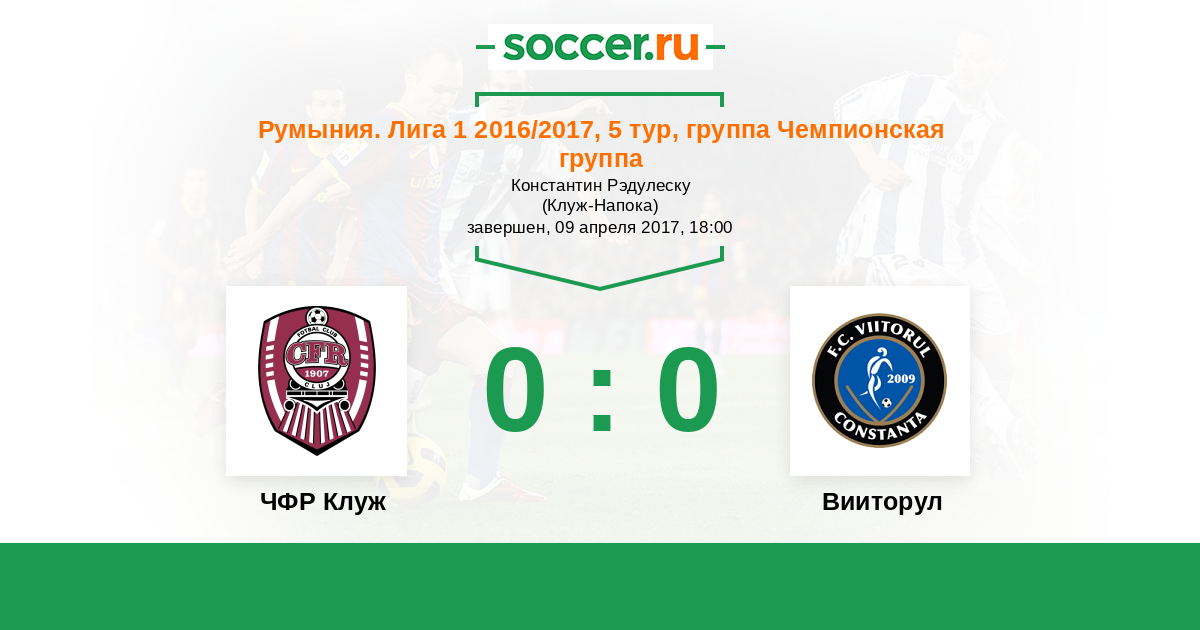 Румыния. Лига 1 05.03.2017 ЧФР Клуж Логотип футбольный клуб ЧФР Клуж (Бухарест) 1:0 Логотип футбольный клуб Вииторул (Констанца) Вииторул