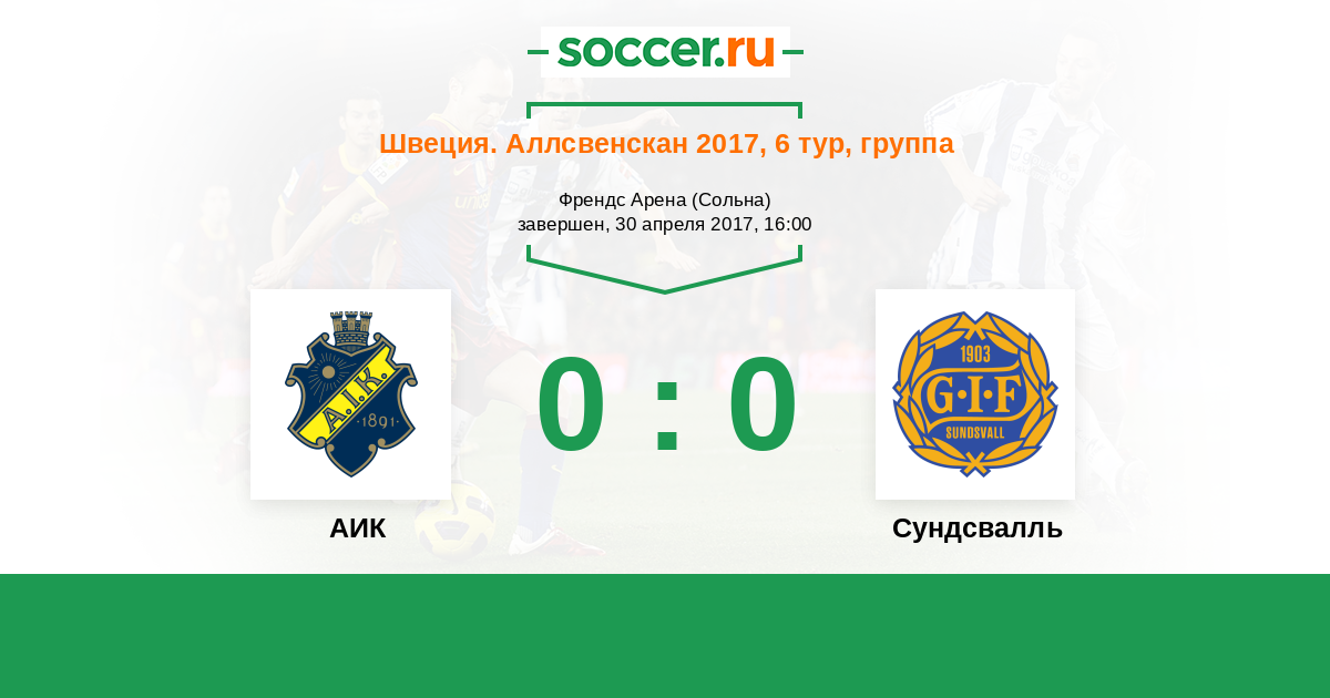 Швеция. Аллсвенскан 21.09.2017 Сундсвалль Логотип футбольный клуб Сундсвалль 0:0 Логотип футбольный клуб АИК (Стокгольм) АИК