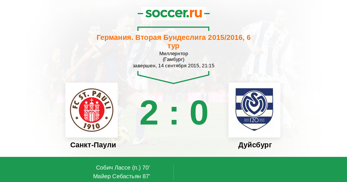 Германия. Бундеслига 2 28.02.2016 Дуйсбург Логотип футбольный клуб Дуйсбург 0:2 Логотип футбольный клуб Санкт-Паули (Гамбург) Санкт-Паули