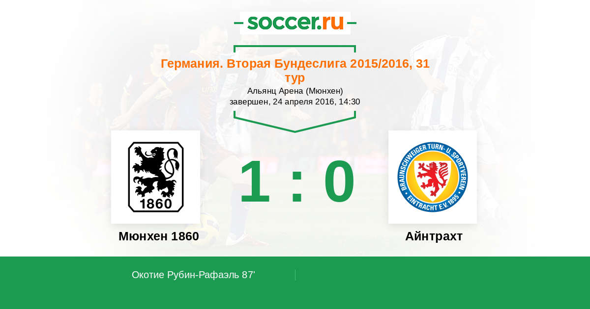 Германия. Бундеслига 2 11.04.2015 Айнтрахт Логотип футбольный клуб Айнтрахт (Брауншвейг) 2:0 Логотип футбольный клуб Мюнхен 1860 Мюнхен 1860