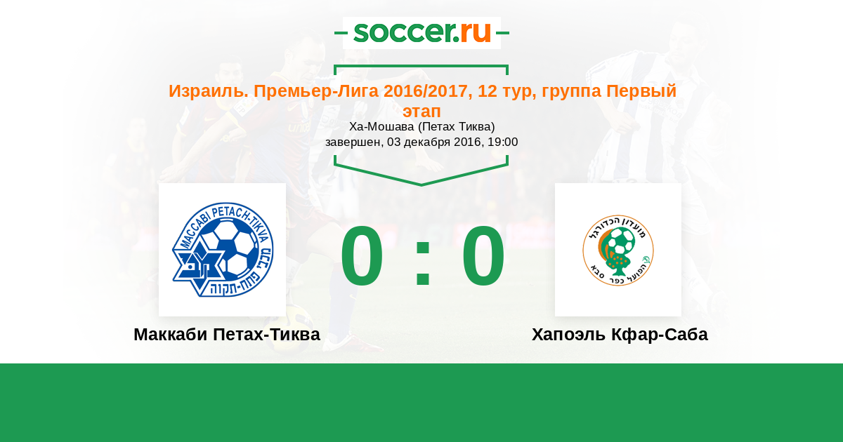 Израиль. Премьер-Лига 05.03.2017 Хапоэль Кфар-Саба Логотип футбольный клуб Хапоэль Кфар-Саба 1:3 Логотип футбольный клуб Маккаби Петах-Тиква Маккаби Петах-Тиква