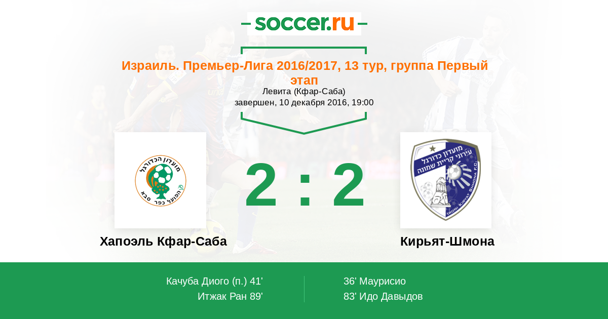 Израиль. Премьер-Лига 06.05.2017 Кирьят-Шмона Логотип футбольный клуб Кирьят-Шмона 1:4 Логотип футбольный клуб Хапоэль Кфар-Саба Хапоэль Кфар-Саба