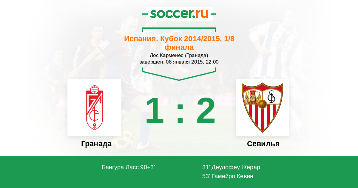 Испания. Кубок 15.01.2015 Севилья Логотип футбольный клуб Севилья 4:0 Логотип футбольный клуб Гранада Гранада