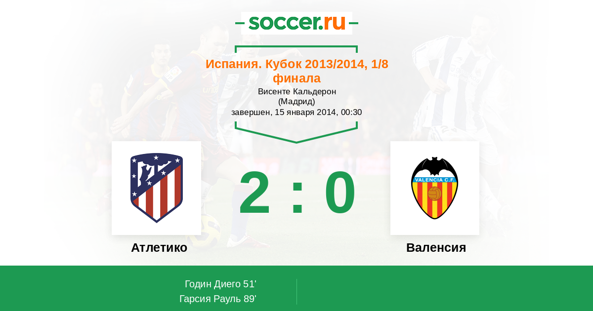 Испания. Кубок 08.01.2014 Валенсия Логотип футбольный клуб Валенсия 1:1 Логотип футбольный клуб Атлетико (Мадрид) Атлетико