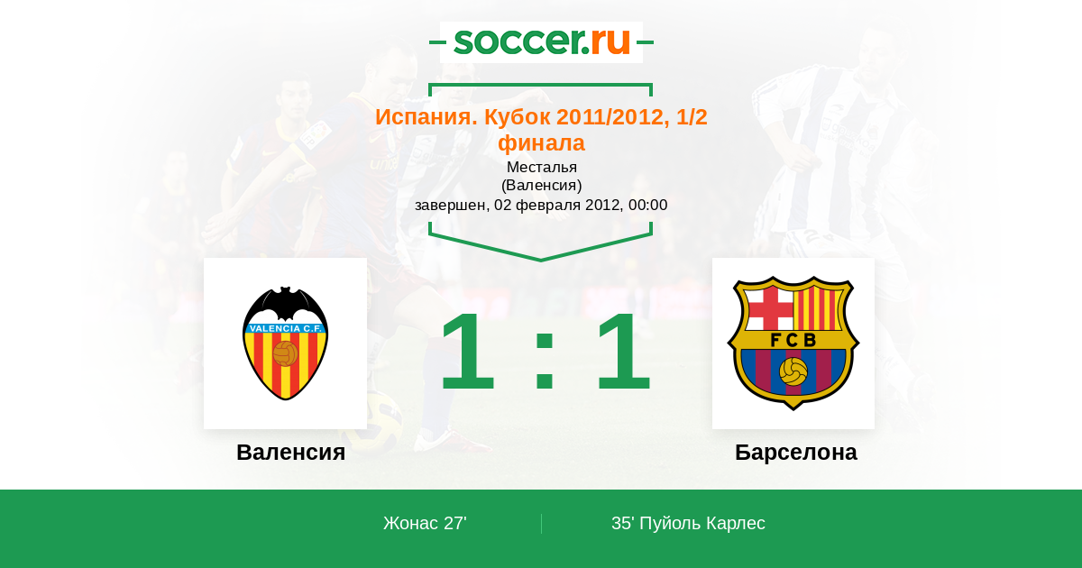 Испания. Кубок 09.02.2012 Барселона Логотип футбольный клуб Барселона 2:0 Логотип футбольный клуб Валенсия Валенсия