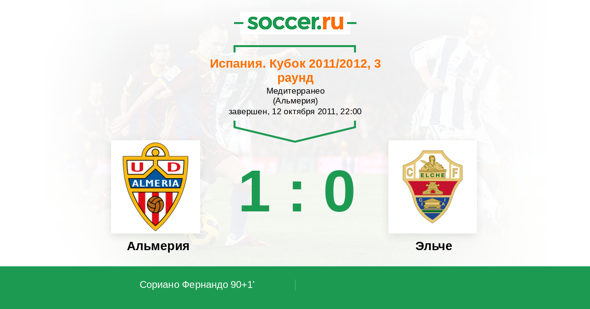 Испания. Сегунда 23.09.2011 Эльче Логотип футбольный клуб Эльче 1:3 Логотип футбольный клуб Альмерия Альмерия