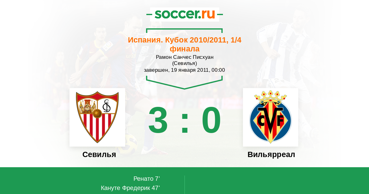 Испания. Кубок 12.01.2011 Вильярреал Логотип футбольный клуб Вильярреал 3:3 Логотип футбольный клуб Севилья Севилья