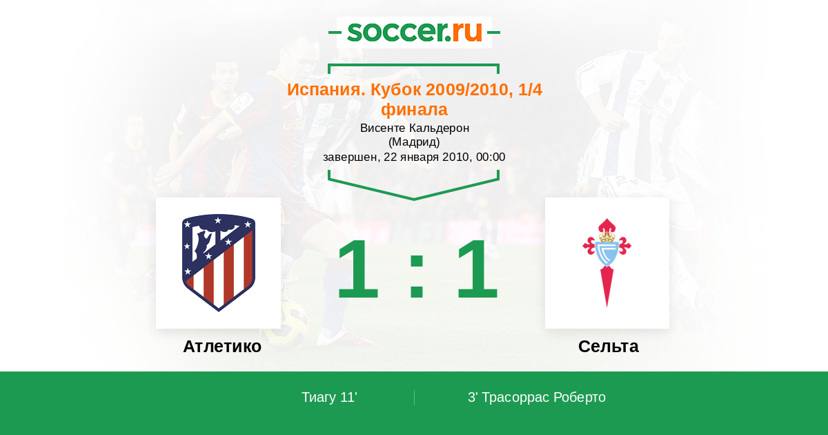 Испания. Кубок 29.01.2010 Сельта Логотип футбольный клуб Сельта (Виго) 0:1 Логотип футбольный клуб Атлетико (Мадрид) Атлетико