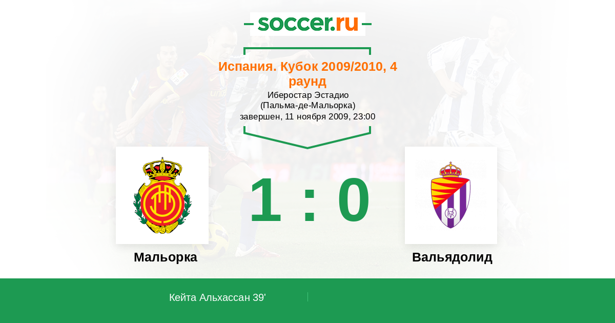 Испания. Кубок 29.10.2009 Вальядолид Логотип футбольный клуб Вальядолид 2:1 Логотип футбольный клуб Мальорка (Пальма-де-Мальорка) Мальорка