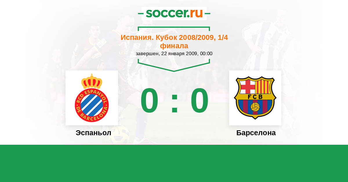 Испания. Кубок 29.01.2009 Барселона Логотип футбольный клуб Барселона 3:2 Логотип футбольный клуб Эспаньол (Барселона) Эспаньол