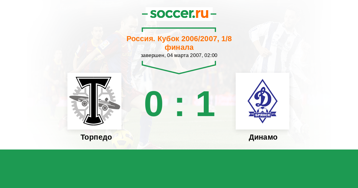 Россия. Кубок 07.03.2007 Динамо Брянск Логотип футбольный клуб Динамо Брянск 0:0 Логотип футбольный клуб Торпедо (Москва) Торпедо