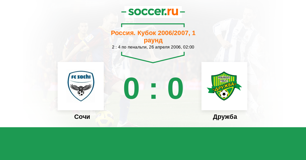 Россия. Кубок 15.04.2007 Сочи Логотип футбольный клуб Сочи 2:1 Логотип футбольный клуб Дружба (Майкоп) Дружба