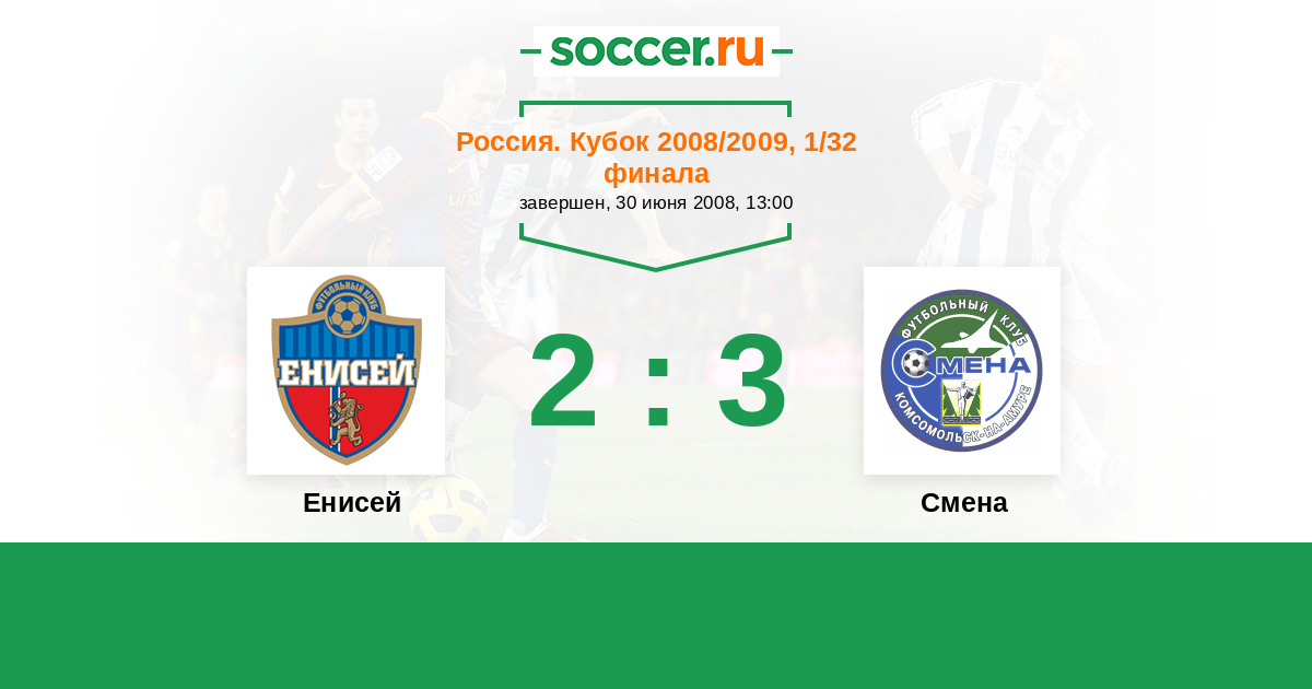 Россия. 2-й дивизион. Восток 23.06.2009 Смена Логотип футбольный клуб Смена (Комсомольск-на-Амуре) 0:0 Логотип футбольный клуб Енисей (Красноярск) Енисей