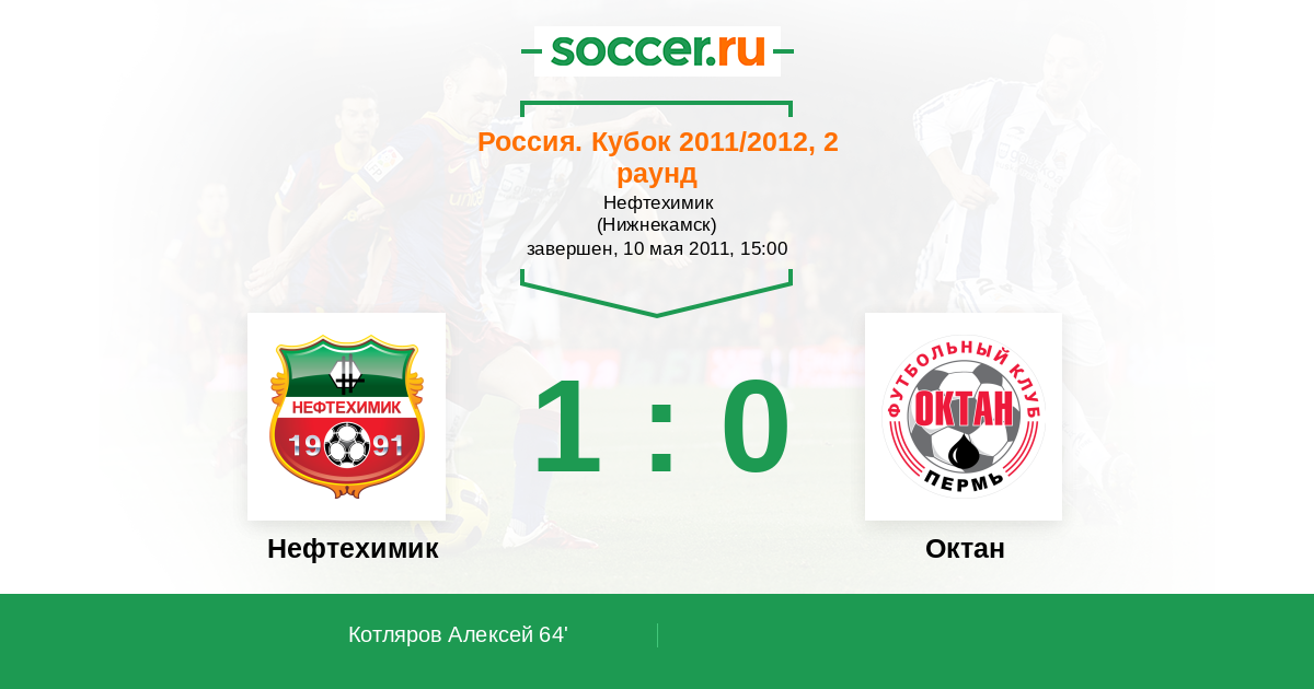 Россия. Вторая лига. Группа 4 12.05.2011 Нефтехимик Логотип футбольный клуб Нефтехимик (Нижнекамск) 2:0 Логотип футбольный клуб Октан (Пермь) Октан