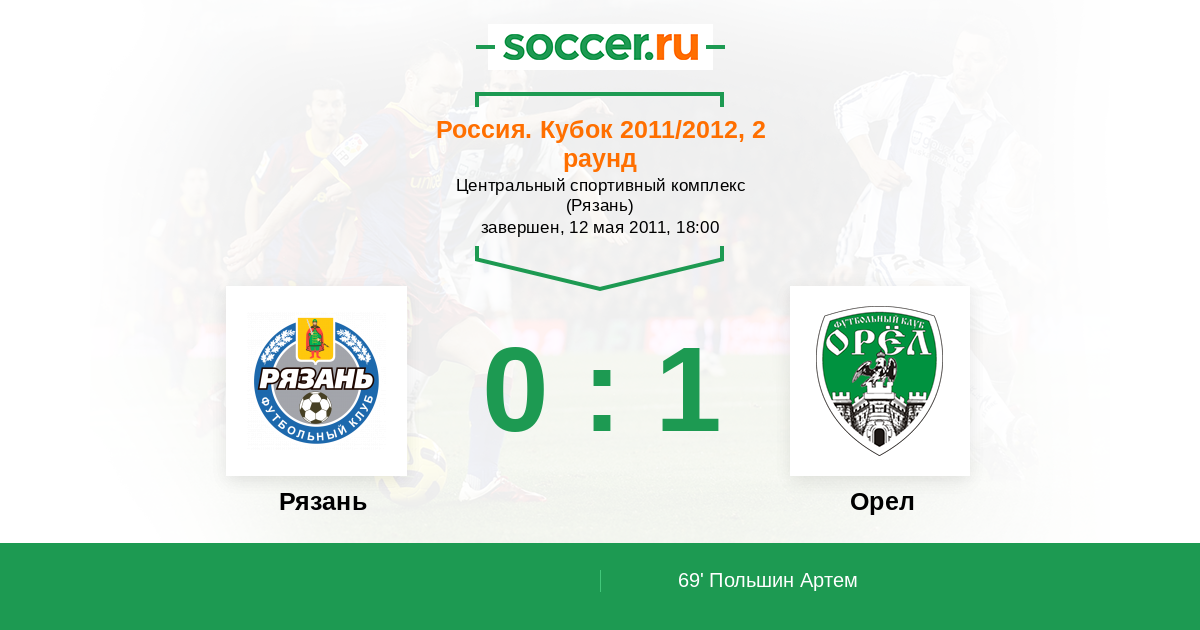 Россия. Кубок 15.05.2010 Орел Логотип футбольный клуб Орел 0:1 Логотип футбольный клуб Звезда Рз (Рязань) Звезда Рз