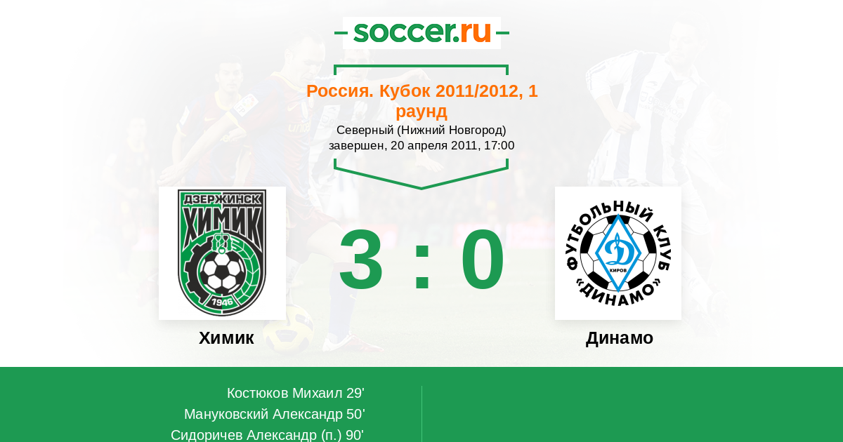 Россия. Вторая лига. Группа 4 24.06.2011 Химик Логотип футбольный клуб Химик (Дзержинск) 2:0 Логотип футбольный клуб Динамо Киров Динамо Киров