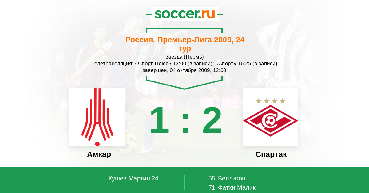 Россия. Премьер-Лига 23.05.2009 Спартак Логотип футбольный клуб Спартак (Москва) 5:1 Логотип футбольный клуб Амкар (Пермь) Амкар