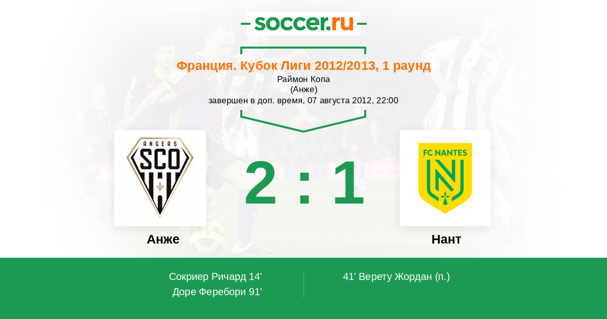 Франция. Лига 2 03.11.2012 Нант Логотип футбольный клуб Нант 1:0 Логотип футбольный клуб Анже Анже