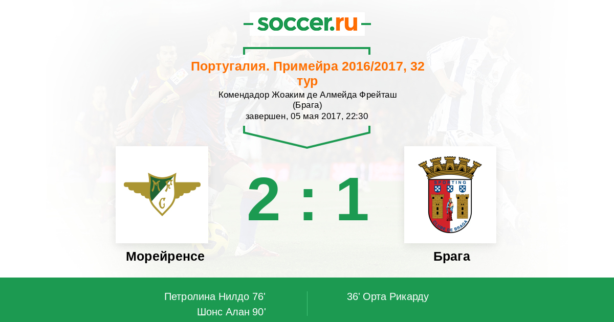 Португалия. Примейра 22.12.2016 Брага Логотип футбольный клуб Брага 2:1 Логотип футбольный клуб Морейренcе (Морейра-де-Конегуш) Морейренcе