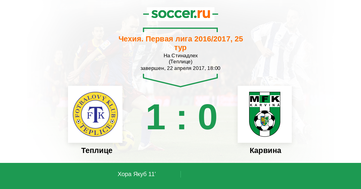 Чехия. Первая Лига 21.10.2017 Теплице Логотип футбольный клуб Теплице 1:0 Логотип футбольный клуб Карвина Карвина