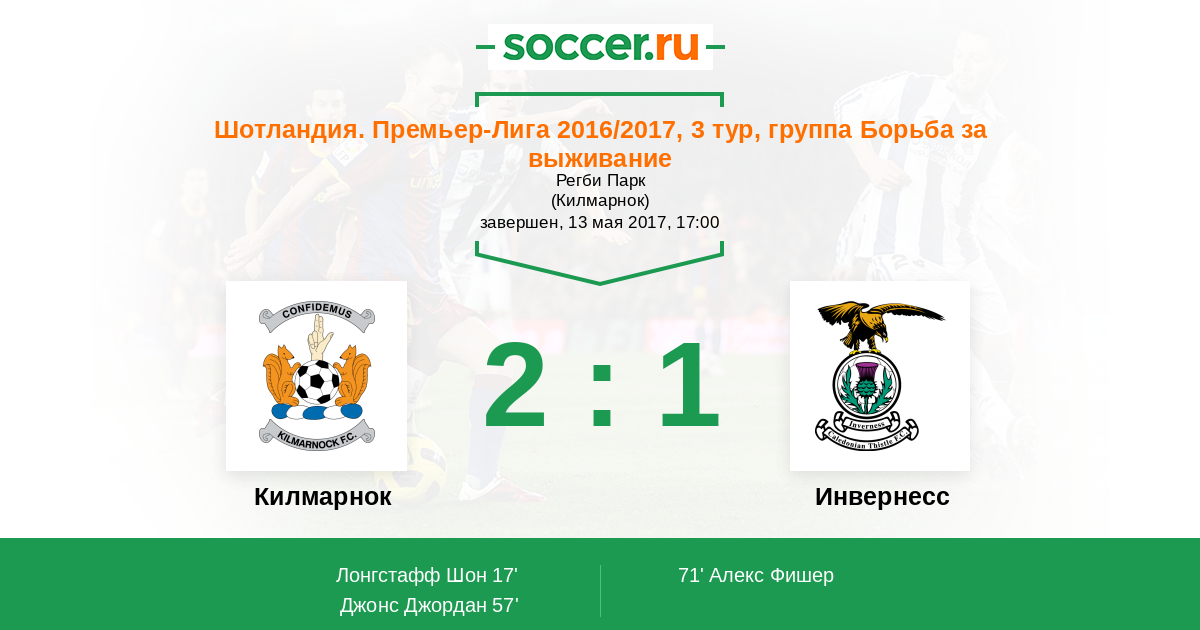 Шотландия. Премьер-Лига 01.04.2017 Инвернесс Логотип футбольный клуб Инвернесс 1:1 Логотип футбольный клуб Килмарнок Килмарнок