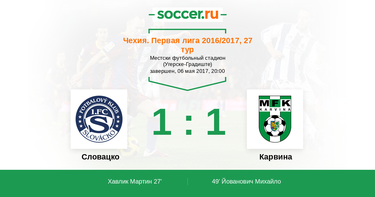 Чехия. Первая Лига 06.11.2016 Карвина Логотип футбольный клуб Карвина 0:1 Логотип футбольный клуб Словацко (Угерске-Градиште) Словацко