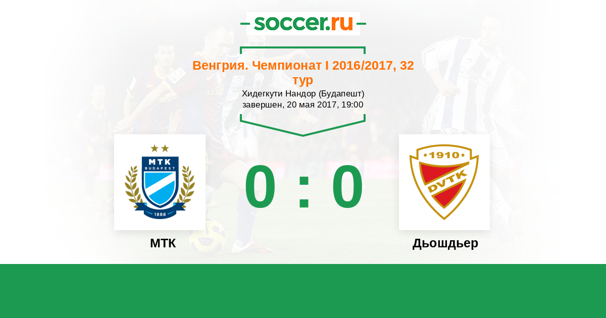 Венгрия. Чемпионат 1 31.05.2015 Дьошдьер Логотип футбольный клуб Дьошдьер (Мишкольц) 1:0 Логотип футбольный клуб МТК (Будапешт) МТК