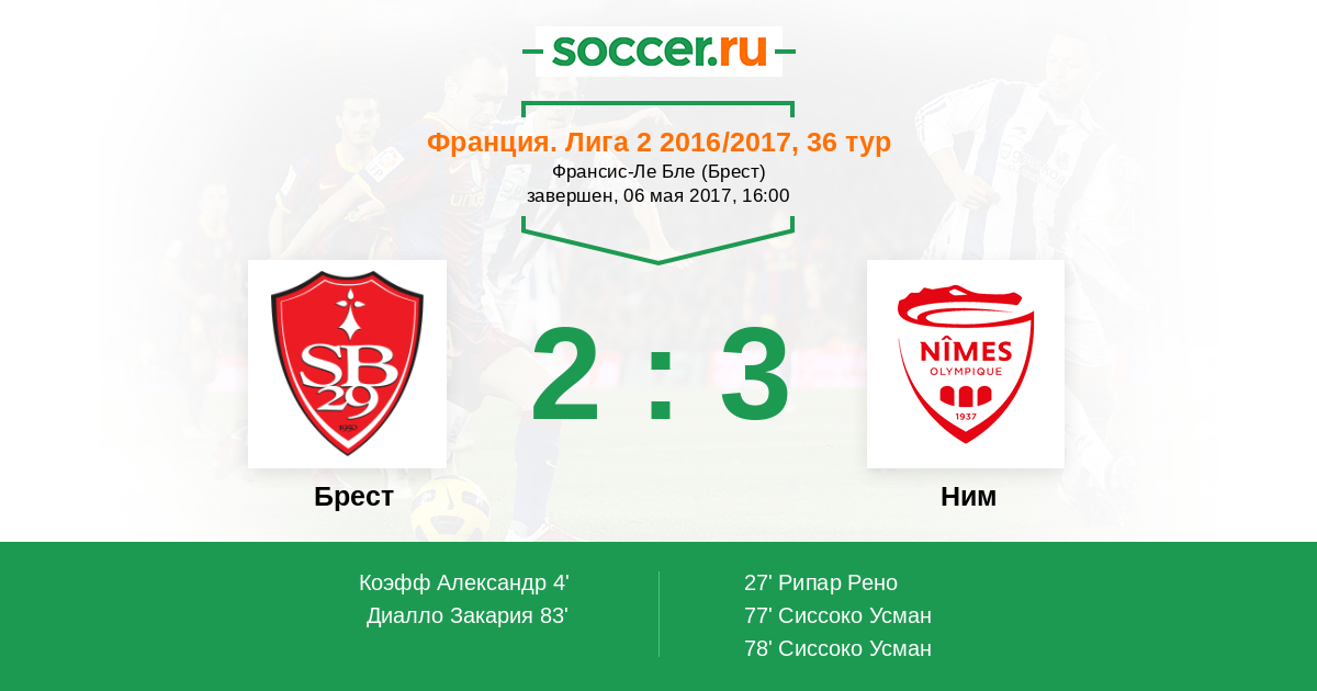 Франция. Лига 2 02.05.2014 Ним Логотип футбольный клуб Ним 1:1 Логотип футбольный клуб Брест Брест