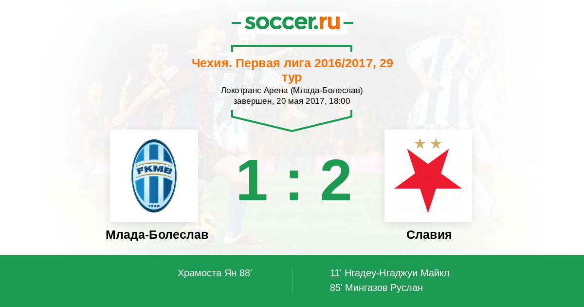 Чехия. Первая Лига 05.03.2016 Млада-Болеслав Логотип футбольный клуб Млада-Болеслав 2:1 Логотип футбольный клуб Славия (Прага) Славия