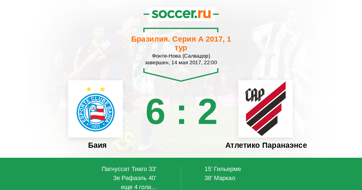Бразилия. Серия А 14.08.2017 Атлетико Паранаэнсе Логотип футбольный клуб Атлетико Паранаэнсе (Куритиба) 4:1 Логотип футбольный клуб Баия (Салвадор) Баия