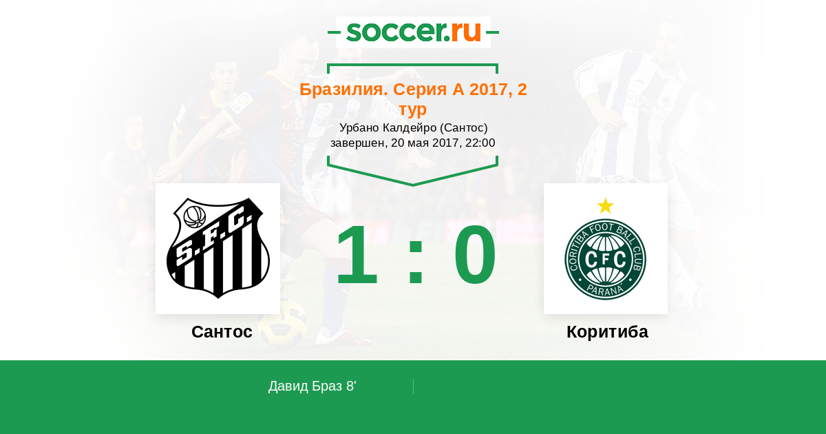 Бразилия. Серия А 22.05.2016 Сантос Логотип футбольный клуб Сантос (Сан-Паулу) 2:1 Логотип футбольный клуб Коритиба Коритиба